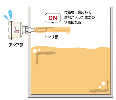 弊社の静電容量式レベルスイッチは付着を検知すると…